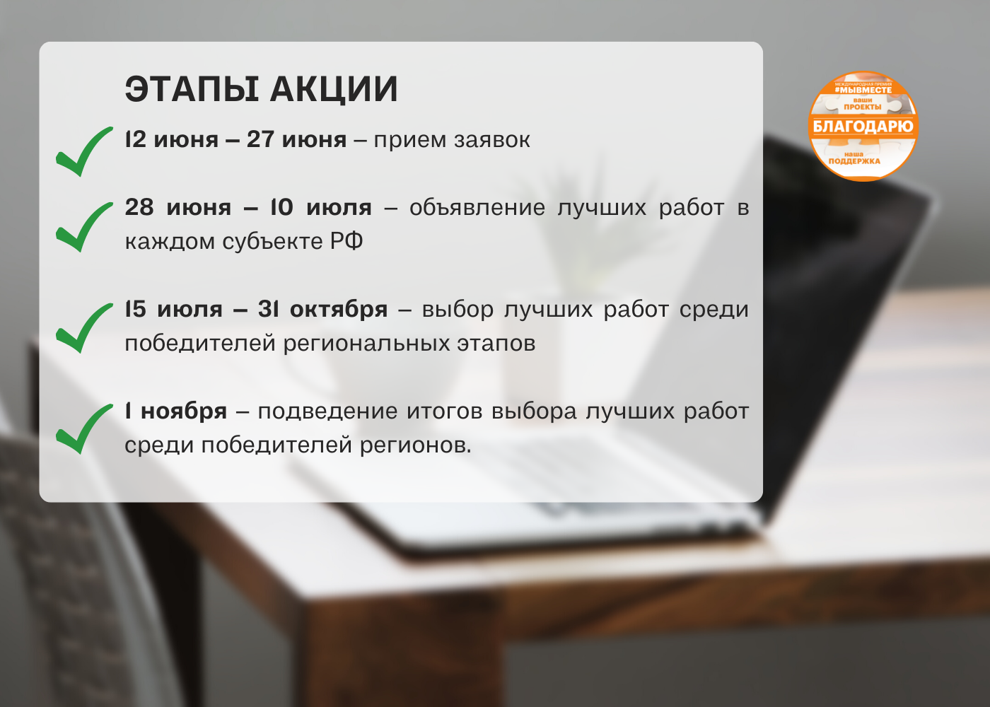 12 июня 2022 года, в рамках проведения Международной Премии #МЫВМЕСТЕ-2022, стартовала акция «Благодарю!».
